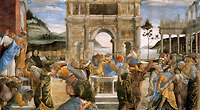 3-3. 술에 취한 노아 : 대홍수가 끝나고 번제를 올려 하느님께 감사를 드린 노아는 밭을 일구고 포도를 심어 포도주를 만들었는데, 포도주를 마시고 취해 장막 안에서 옷을 벗은 채 잠들자 이걸 본 차남 함이 아버지에게 옷을 덮어 가리는 대신 장남 셈과 삼남 야벳에게 이를 알렸고, 셈과 야벳이 아버지의 하반신을 보지 않기 위해 고개를 돌려 옷으로 가리는 장면이다. 나중에 술에서 깨 이 사실을 알게 된 노아는 함의 아들 가나안의 후손들이 셈과 야벳의 후손의 종이 될 것이라고 저주했다.