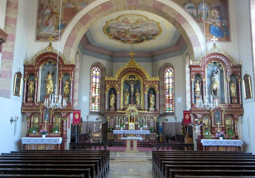 내부 역시 로마네스크 양식이나 제단이 있는 중앙 부분은 바로크 양식으로 새단장되었다. 특히 바로크 양식으로 치장된 부분은 정교한 조각과 황금빛 제단의 조화가 매우 아름답다.