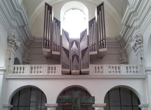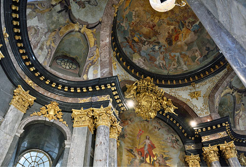8각형의 이중돔은 1712~1716년 제작됐다. 1736년 프레스화가 완성됐는데 550m 면적에 성도들과 천사들이 삼위일체를 숭배하는 모습을 보여주고 있다. 2차 대전 당시 폭격으로 심하게 손상된 것을 2007~2008년에 복원한 것이다.