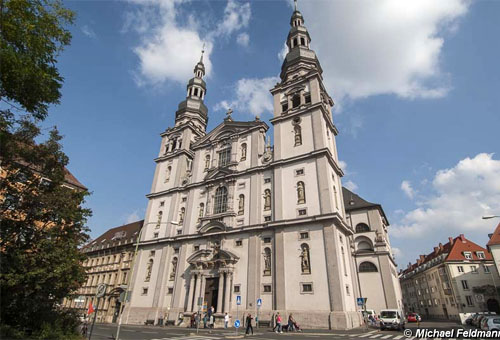 중세 시대에 고딕 양식의 건물이었던 것을 1717~1720년 로마네스크 양식과 고딕 양식을 혼합한 바로크 양식으로 개조했다. 제2차 세계대전이 끝났을 때 원해 모습으로 복원을 마쳤다. 바로크 양식으로 치장된 기둥이 매우 화려하다.