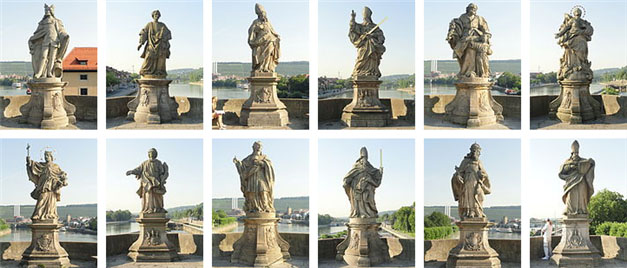 보행자 전용 돌다리로 오늘날에도 사람이 이 다리를 이용하여 강을 건너다닌다. 다리의 양편으로는 총 12개의 석상이 서 있다. 모두 그 수준이 범상치 않은 정교한 조각으로서, 뷔르츠부르크의 왕이나 주교, 또는 성자를 모델로 하고 있다. 1720년대 말에 6개가 만들어졌고, 1730년에 나머지 6개가 마저 만들어졌다.